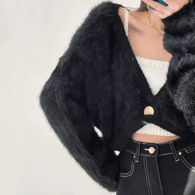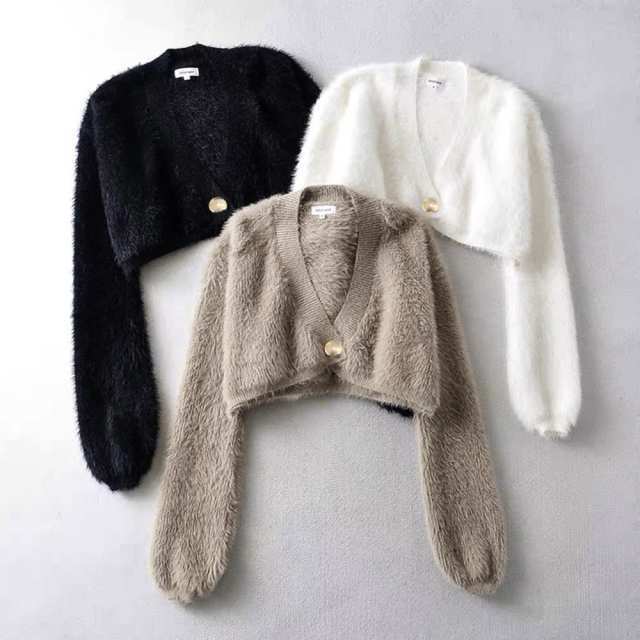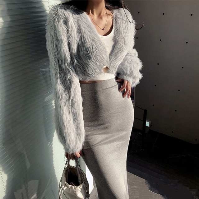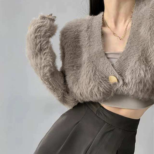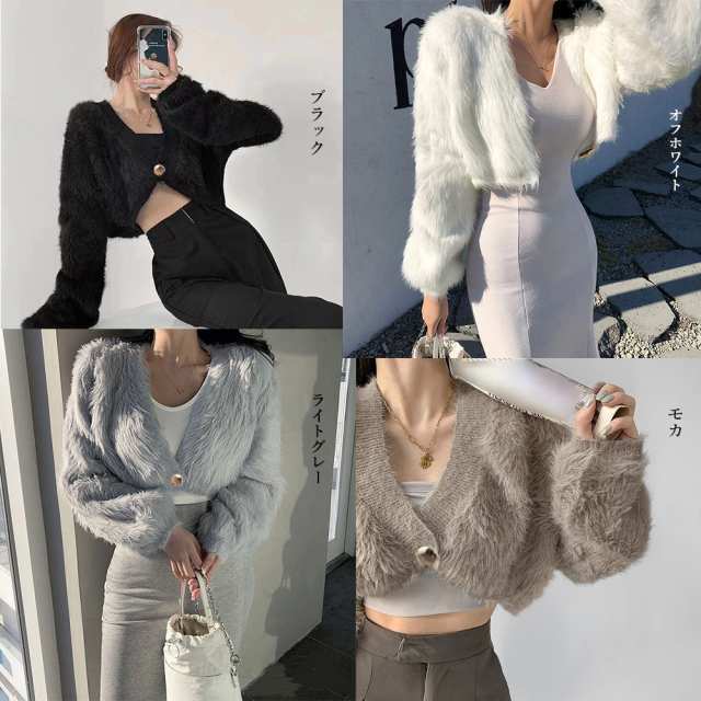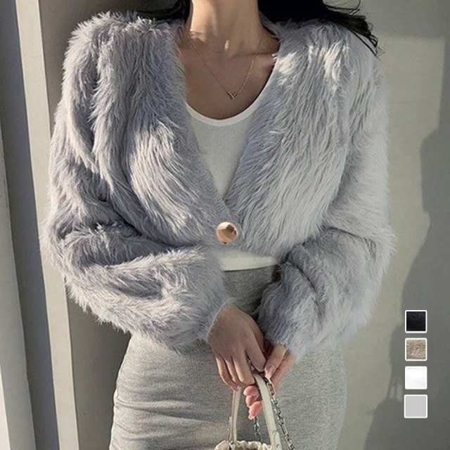 レディース おしゃれ エコファー ジャケット Vネック 秋冬アウター クロップド丈 防寒ノーカラーコート あったかい韓国