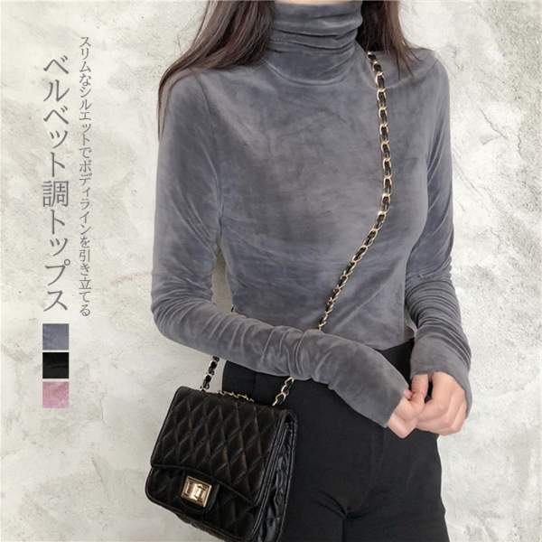 2024新作 レディース セーター プルオーバー タートルネック ベルベット調 起毛素材 ベロア調